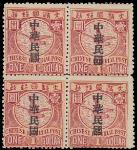 1912 Opt. 'ROC' on Flying Geese $1 red and pale rose block of 4, upper left stamp with retouched  'One' variety, unmounted mint,