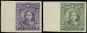 1931 SYS London 2nd Print, $1 green and $2 deep purple imperf proof with original gum, both wide margins and light toning on