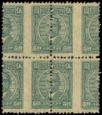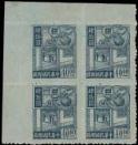 1945-46 SYS Chungking Dah Tung print $5 green block of 4 with vert. imperf. between and missed perf. varieties, no gum as