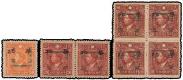 invert. Block of 4, right lower stamp ‘Yuna’ omitted and left lower stamp opt. ‘Bi’ instead of ‘Ten’, $20 on 40c opt. invert. no gum
