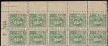 1947 SYS Shanghai Dah Tung 2nd print, $500 green block of 10 upper corner copy with plate no. paper fold variety at the right
