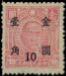 1948 Gold Yuan surcharged 10c on $20 pale rose red, SYS Chungking Chung Hwa Print. Mint no gum as issued. Chan G41.