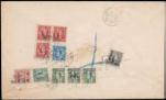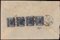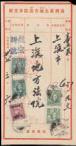 1948 (12 Apr.) A cover to Taichung, Taiwan, on reverse bearing Gold Yuan surch. $100 on $50 revenue stamp strip of 4, tied by
