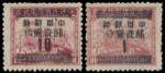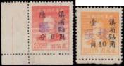 1949 Silver Yuan Hupeh surcharged on revenue stamps, 1c on $20 red brown and 10c on $20 red brown, mint and no gum as issued.