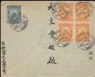1932 Opt. 'Air Mail' in red char. On opt.'Limited For Use in Sinkiang Province' 15c Reaper blue, used with part of bilingual