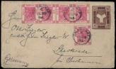 1896 (27 June) An opened cover of  Shanghai Local Post 1c brown Coat of Arms type pre-stamp stationery envelope (untied),