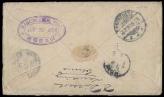 'NANKING LOCAL POST/JUN 27 1896' cancellation in blue. 'SHANGHAI LOCAL POST/28 JUN 96' transit, Hong Kong transit