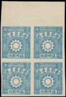 1938 Chin-Cha-Ki Border Area, White full Sun of Nationalist China, 1c purple 1st print on brown paper block of 4 with large