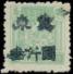 Cheng Cheng Kung surch. 20c on $1 with slogan chop in blue alongside. Photo