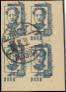 1944 Shantung Wartime Post, Chairman Mao issue, 1st print, newsprint, 5c deep blue, imperf. block of 4 with right and bottom