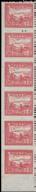 1949 Tientsin print, Postal Runner and Train $3 deep carmine vertical strip of 6, from 2nd stamp to 6th stamp imperf. between