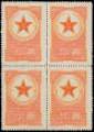 1953 (C20) 35th Anniv. Of Great October Revolution. Complete set of 4 in block of 4. U/M, no gum as issued, light toning at back.