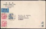 1954 (16 Feb.) Acover to fro0m Canton to Macau, on reverse with S1 $400 and R4 TienAn Men $400 tied by char. 'GUANGZHOU'