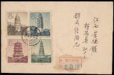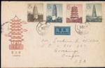 1958 (15 Mar.) A FDC of S21 Ancient Chinese Pagadas, tied by char. 'BEIJING' cds, registered to Kiangsi with char. 'KIANGSI'