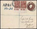 black at left, on reverse with same A.P.O.1 cds, fine and very scarce with the earliest recorded date of usage of A.P.O.1 cds. Photo