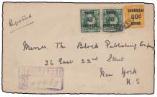 1919 (27 Sept.) A cover to Tientsin Japanese concession, bearing opt. 'China' on Tazawa 3sen rose red in pair, top stamp defects tied