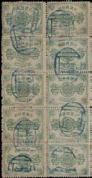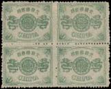 1894 Dowager 1st print, 9 cds dull green block of 10, tied by 'Shanghai' seal chop x 10, few toned spots. Chan 28. Photo