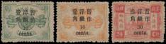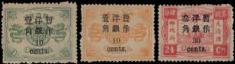 1897 Dowager small figures surcharged 1/2c to 30c complete set of 10, mint, 8c, 10c on 6cds no gum, fine. Chan 37-46. Photo