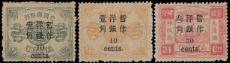 1897 Dowager 1st printing. Small figures surcharged. 2c on 2 cds, 4c on 4 cds, 10c on 6 cds brown, 10c on 6c chocolate. Mint,