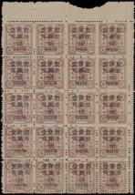 1897 Dowager Small figures surcharged 10c on 6cds block of 20 with top margin sheet, um and fresh on both sides. Chan 44.