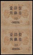 1897 Dowager Small figures surcharged 10c on 12cds brown orange, vert. pair imperf. between. Rest of margin has been trimmed,