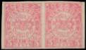1890 Shanghai Local Post Double Dragon, 5c rose in horiz. pair imperf. proof. 3 creased lines on back, Chan LS126 proof. Photo