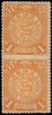 1902-03 Coiling Dragon no watermark, 1c ochre horiz. pair imperf. between variety. Mint and heavy hinge. Chan 117i. Photo