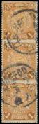 1902-03 Coiling Dragon no watermark, 1c ochre vert. strip of 3 with imperf. between variety, top stamp trimmed at upper perf.