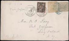 1895 (8 Feb.) Small Dragon and French P.O. combination cover via Japan to USA, franked on front with 1888 Small Dragon