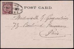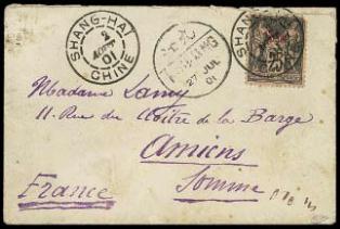 added with “Chine” opt. on French Peace & Commerce 10c, tied by SHANG-HAI CHINE 2 JUIN 01 cds’s, and PARIS 30 JUIL