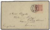 1904 A cover to England, bearing Coiling Dragon 20c claret tied by 'KWANLING' Lunar cds, on reverse with bilingual 'CANTON'