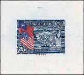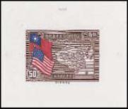 and imperforate master die proof of 5c, with flags blank, printed in green on soft white paper (57 x 42mm).