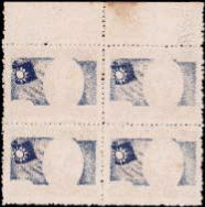surcharge, 50c + 50c blue, block of 4 with right margin,