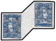 ultramarine, vertical pair, with perf. misplaced upwards,