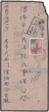 only 8 covers known, rare, plus a single stamp. VF. Yang