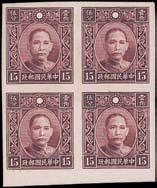 1913 London print Junk, 1/2c, 3c & 5c all horizontal gutter pairs and the left stamp with imperforate right margin, another 1c similar pair but the right stamp with imperforate left margin, mint, some aging spots. (Chan 208 & variety, 209 & e, 211 & variety, 213 & variety). Photo