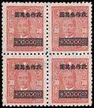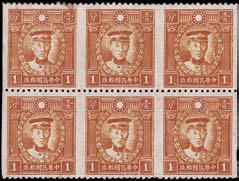1913 Junk deep blue green in block of six, postal forgery, fresh and minor toned spots on back. Photo