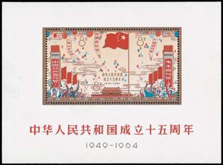 1964 15th Anniv. Of Founding of People's Republic of China (C106M) miniature sheet, unmounted mint with full original gum, light dirt on left and minor creased at lower central, still fne. Photo