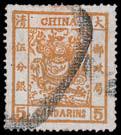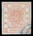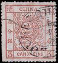 1882 Customs Large Dragon, wide margin 3Cds. brown red, with top margin, used with almost complete strike of large Tientsin seal cancel, and partial strike of red foreign cds, very fne. (Chan 5). Photo