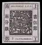 1865 Shanghai Large Dragon 2 Candareens black printing #21 mint, wide margins. Photo.