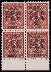 1897 Red Revenue Surch. with large characters of Chinese value, 1c on 3c red, mint, full original gum, lightly hinged, fne. (Chan 87). Photo