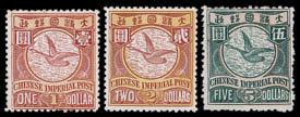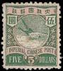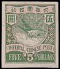 1897 ICP Coiling Dragon, Flying Goose, high value $5 yellow green & rose, rich colour, fne mint, original gum, hinged, with a couple shortish perforations at left and right. (Chan 103). Photo
