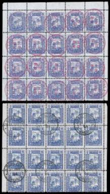 1893 1st issue, 1/2c block of 20 x 2, 5c block of 20 x 4,