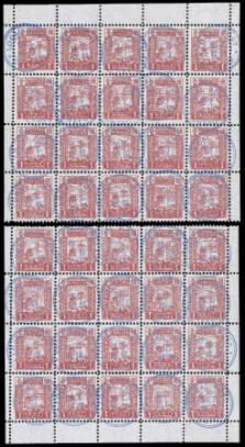 1893 1st issue 1c red corner block of 20 x 10, each tied