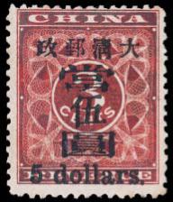Large figures $5 on 3c, mint and no gum, with center top character 'Dang' broken bottom stroke variety (