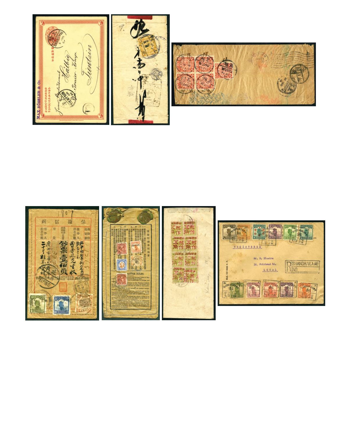 A group of 3 covers and 2 picture postcards, each bearing various CIP issues, including a 1907 cover sent from Wuhu to USA with