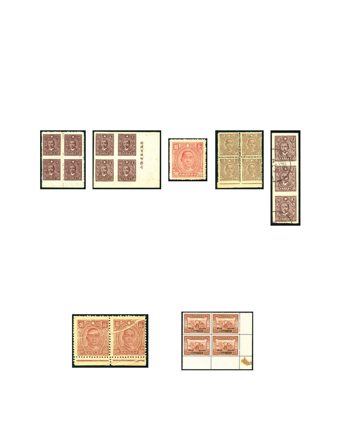 1943 SYS Chungking Chung Hwa print, $20 rose red block of 4 with imprint, top right stamp with printing processing error, with